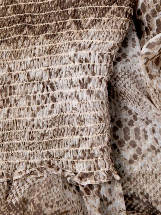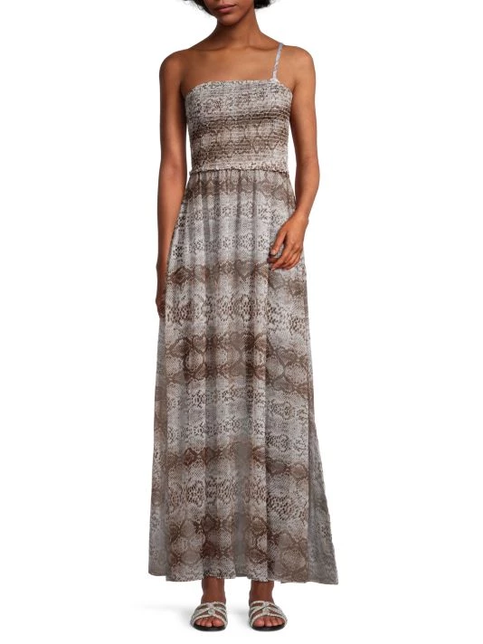 This maxi-length dress is decorated with a snakeskin print.