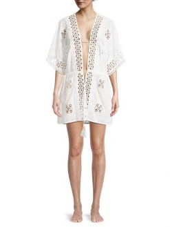 This dress is designed in a wrap style of shining metallic fabric with a high-low hem.