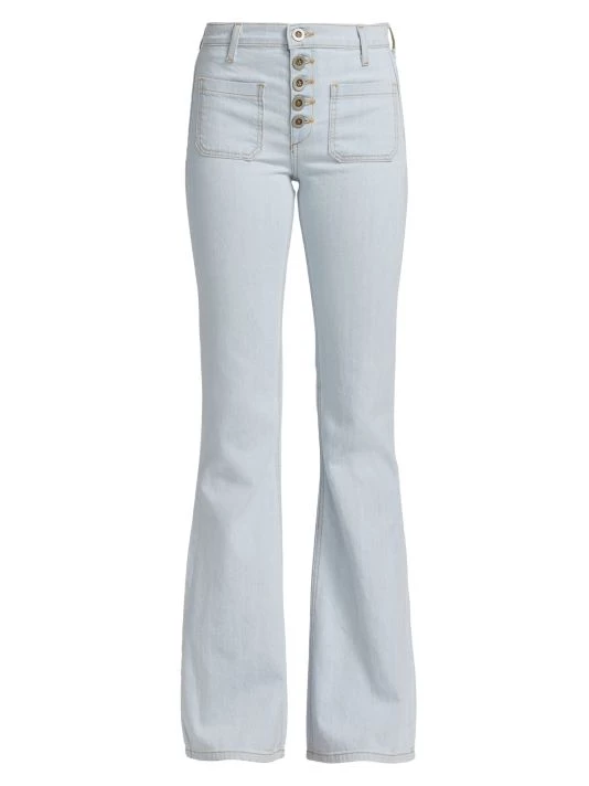 These chic faded jeans are fitted with a mid-rise waist, extending into a flared bootcut silhouette.