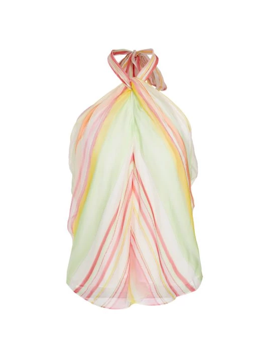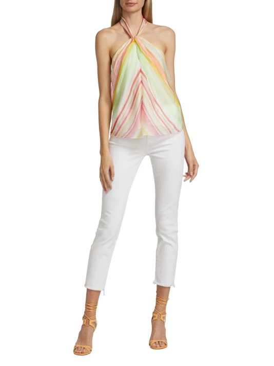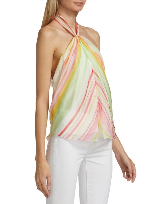 The Fern halter top by Ramy Brook is crafted of flowing fabric with colorful stripes.
