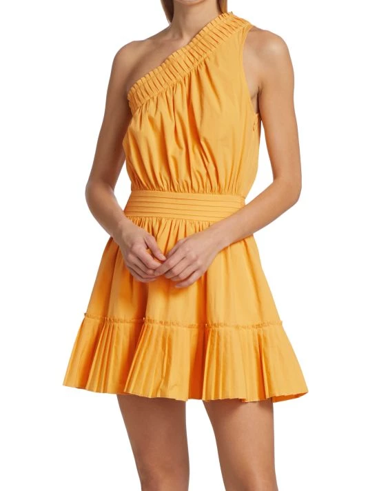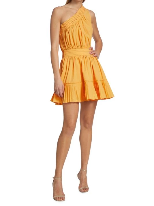 Flaunting one shoulder, Ramy Brook’s Helga dress is detailed with an elegant ruffled skirt. This flattering piece is finished with a smocked waistline.