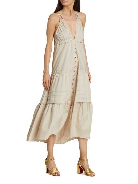 Crafted of cotton poplin, the Hester dress by Ramy Brook is designed in a midi-length with a tiered skirt.