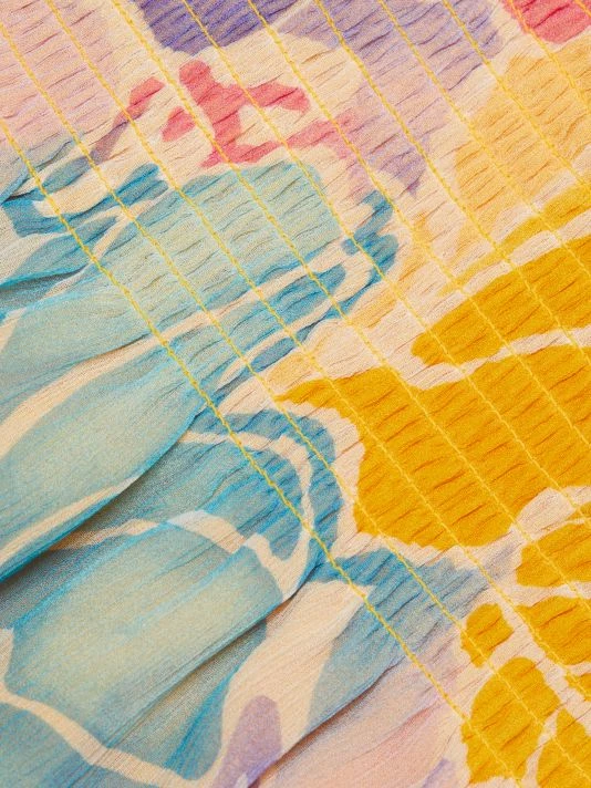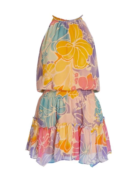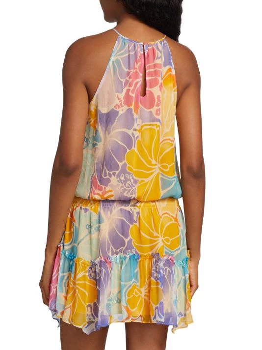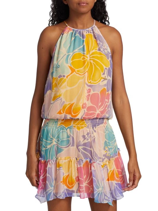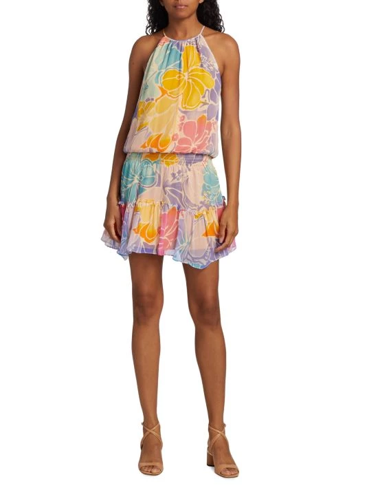 Crafted of silk, Ramy Brook’s sleeveless Kourtney minidress boasts a playful painterly floral print and smocked waist.