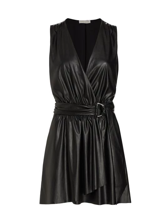 Crafted of faux leather, the Lily minidress from Ramy Brook features a wrap-front V-neck bodice with a D-ring belt closure. Side on-seam pockets complete the look.