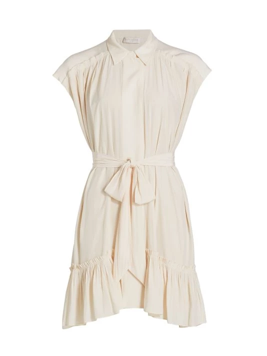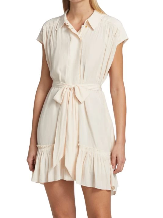 This charming London minidress from Ramy Brook highlights the waist with a self-tie, adorned with a romantic ruffle hem.