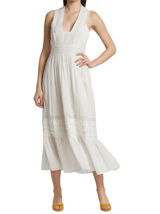 Ramy Brook’s lightweight cotton midi-dress flows from a minimalist scoopneck. Showcasing stitch detailing at the skirt, this style has an effortlessly chic aesthetic.