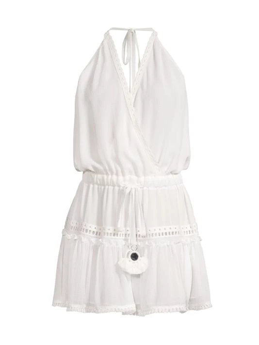 Ramy Brook’s Marla dress is adorned with delicate lace trim with a halter neckline.