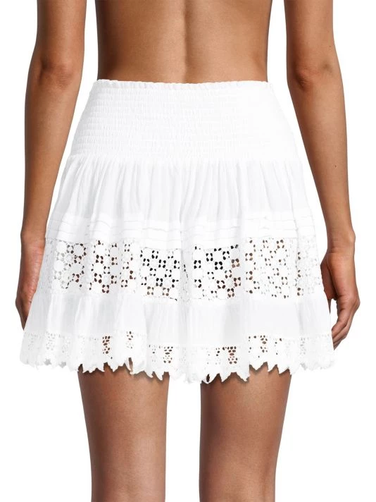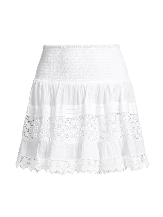 Detailed with intricate embroidery, Ramy Brook’s Maxine mini skirt is designed with a smocked waistband.
