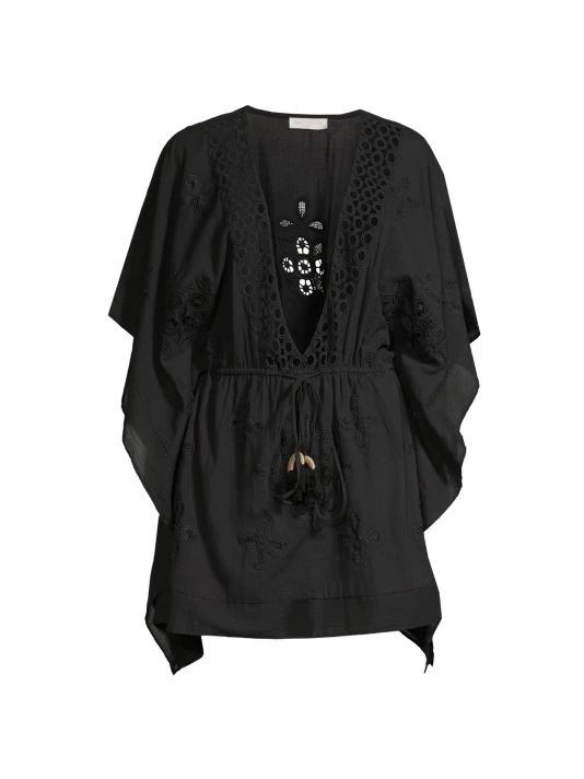 Ramy Brook’s Missi coverup is designed in a caftan silhouette. Crafted of cotton, this breezy style is embroidered with a plunging V-neck.