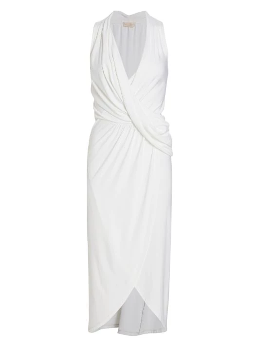 Ramy Brook presents the Monaco midi-dress, draped at the bodice into the hem creating an elevated design. Crossing at the waist, this flowing style boasts Greecian inspirations.