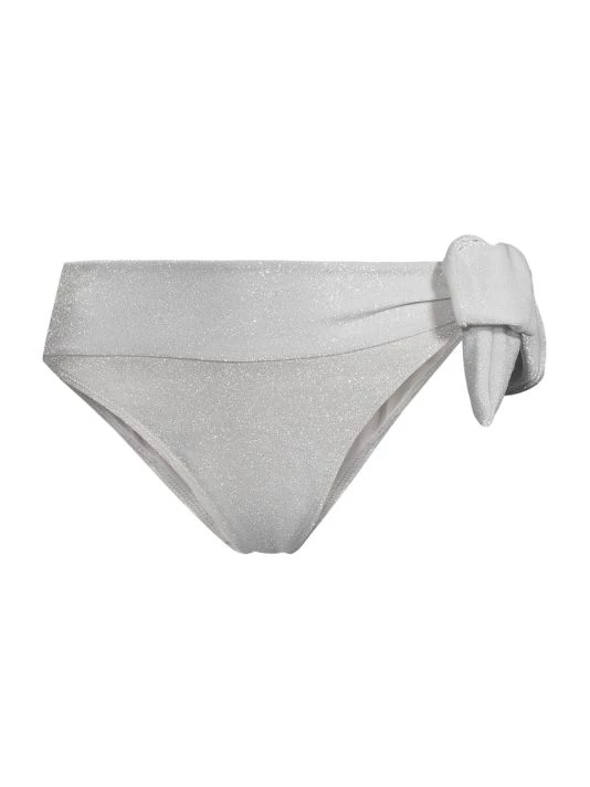 The Nova bikini bottom is crafted of metallic stretch fabric with a side tie detail.
