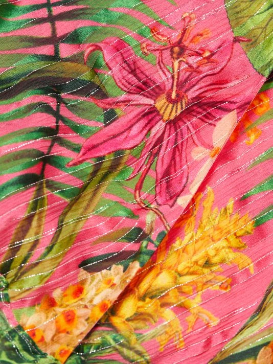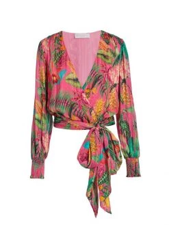Decorated in a vibrant palm print, Ramy Brook’s Quentin top flaunts a surplice neckline complemented by a sash-tie closure. This statement piece is finished with voluminous billowy sleeves.