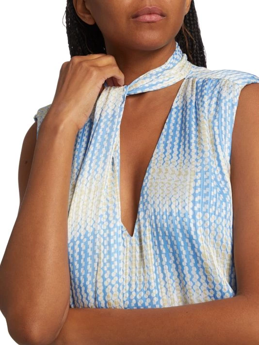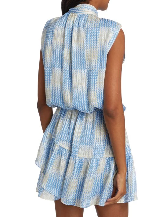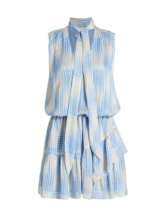 Crafted of printed satin, the Shawnie minidress by Ramy Brook is finished with a tie-neck and tiered skirt.