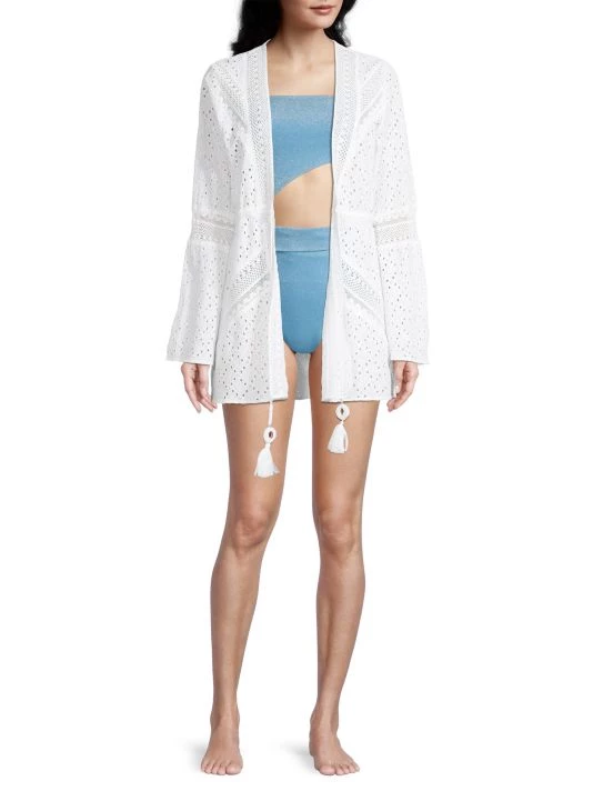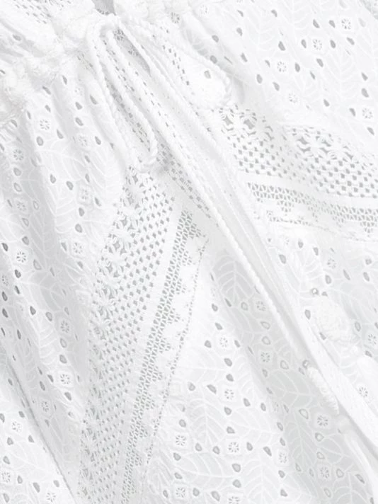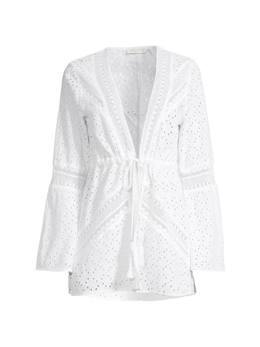 From the Holiday Swim/Coverups Collection. This cotton coverup dress flows effortlessly, crafted with eyelet lace and cinched with self-tie.