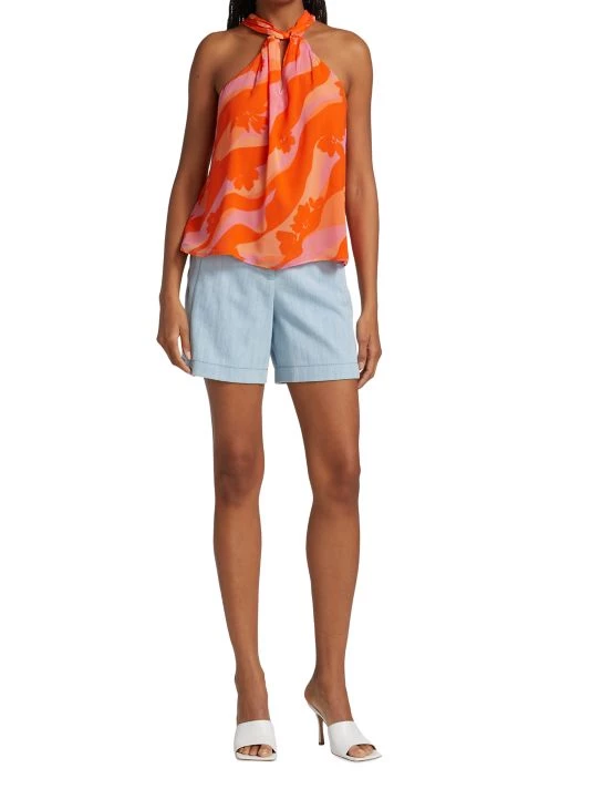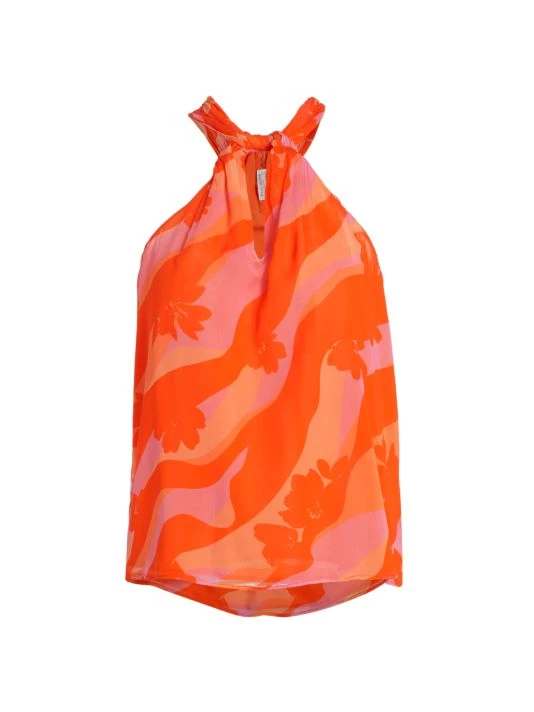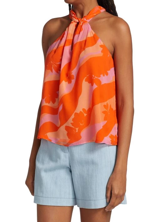 This twisted halterneck top is complete with a chest cut out and abstract floral print.