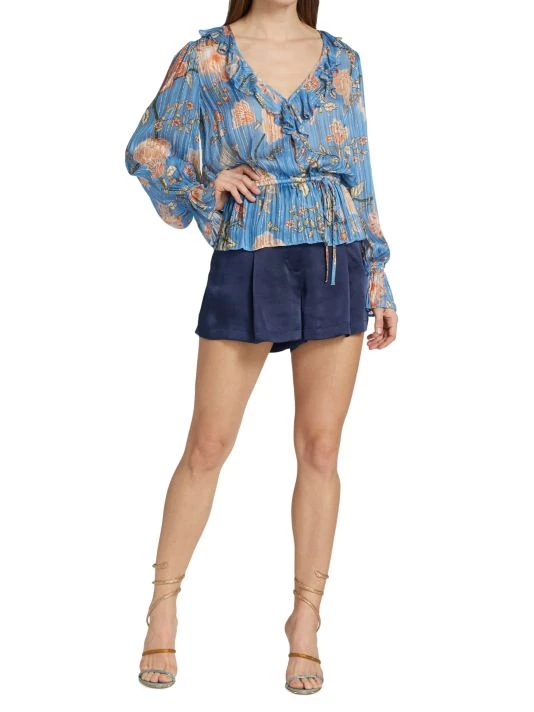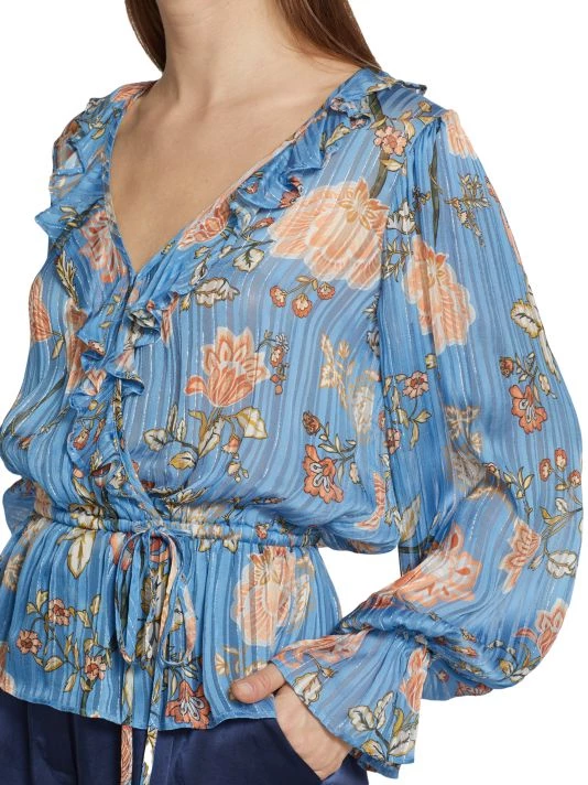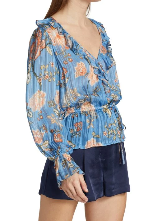 This flowing, wrap-front-style blouse from Ramy Brook features romantic poet sleeves and an adjustable drawstring waistband.